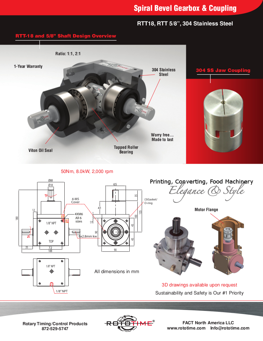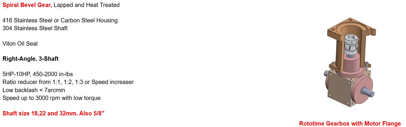 Stainless Steel Bevel Gearbox RT/RTT Series