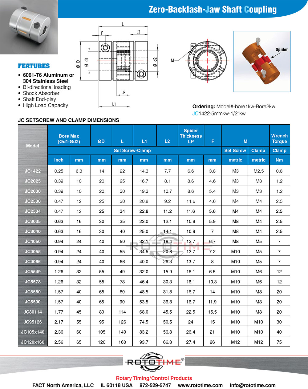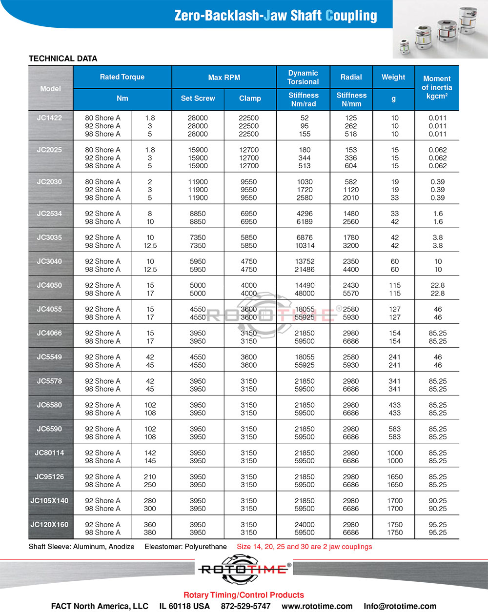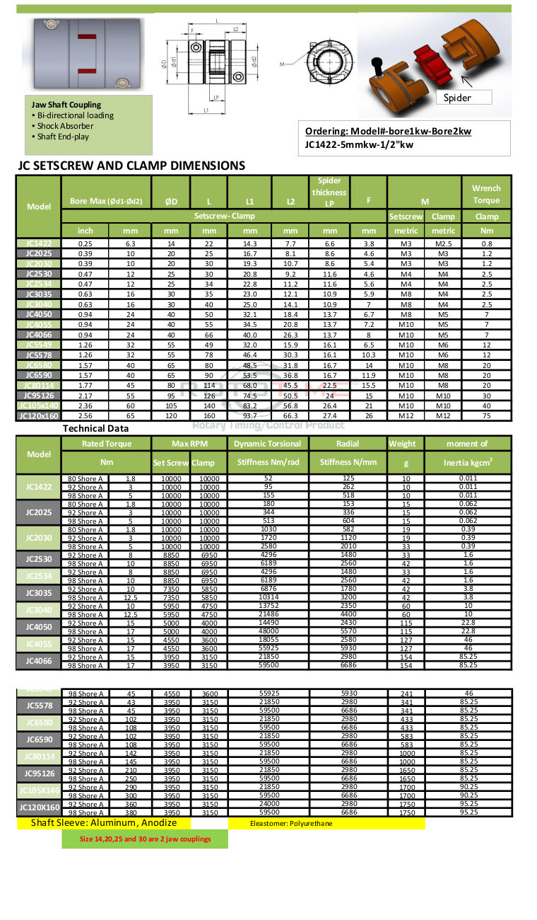 Jaw Coupling- 6061-TC Aluminum or 304 Stainless Steel
